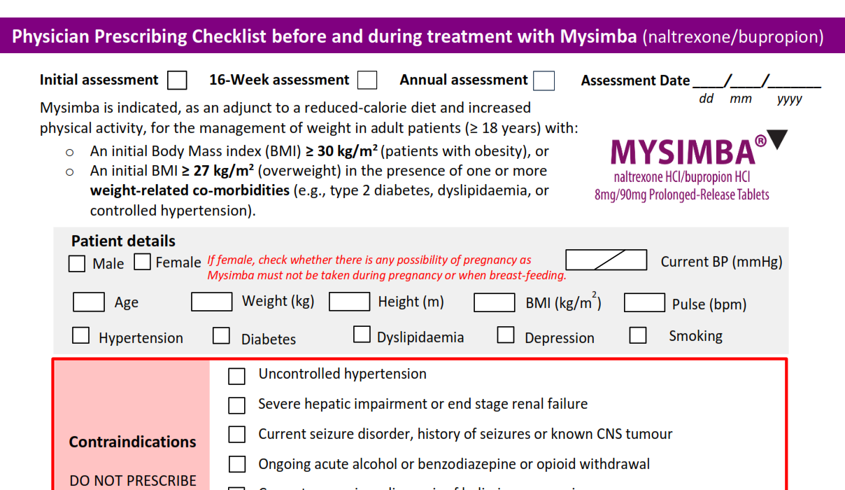 Mysimba Physician Prescribing Checklist