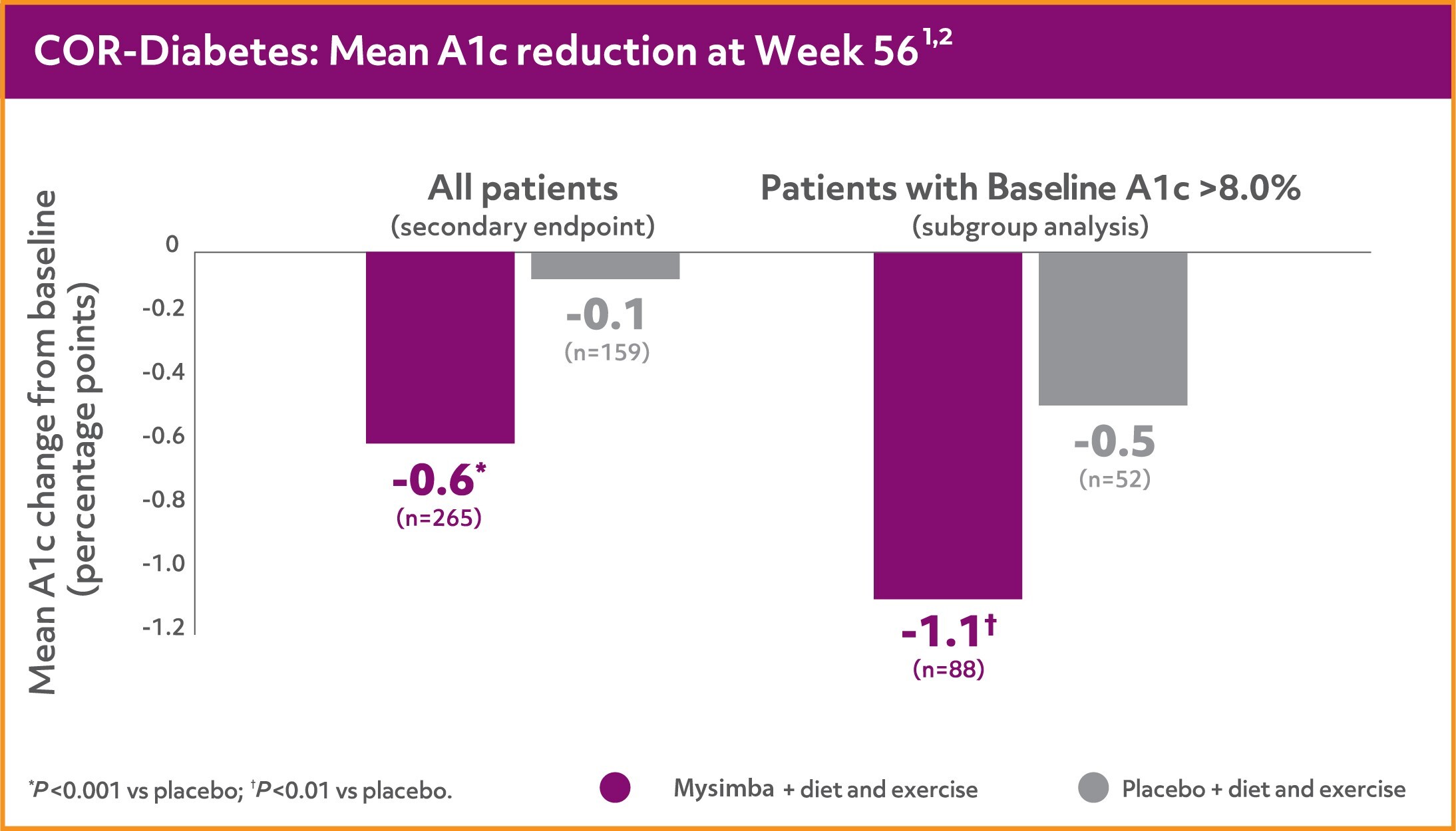 Mysimba® significantly improved A1c in patients with type 2 diabetes1